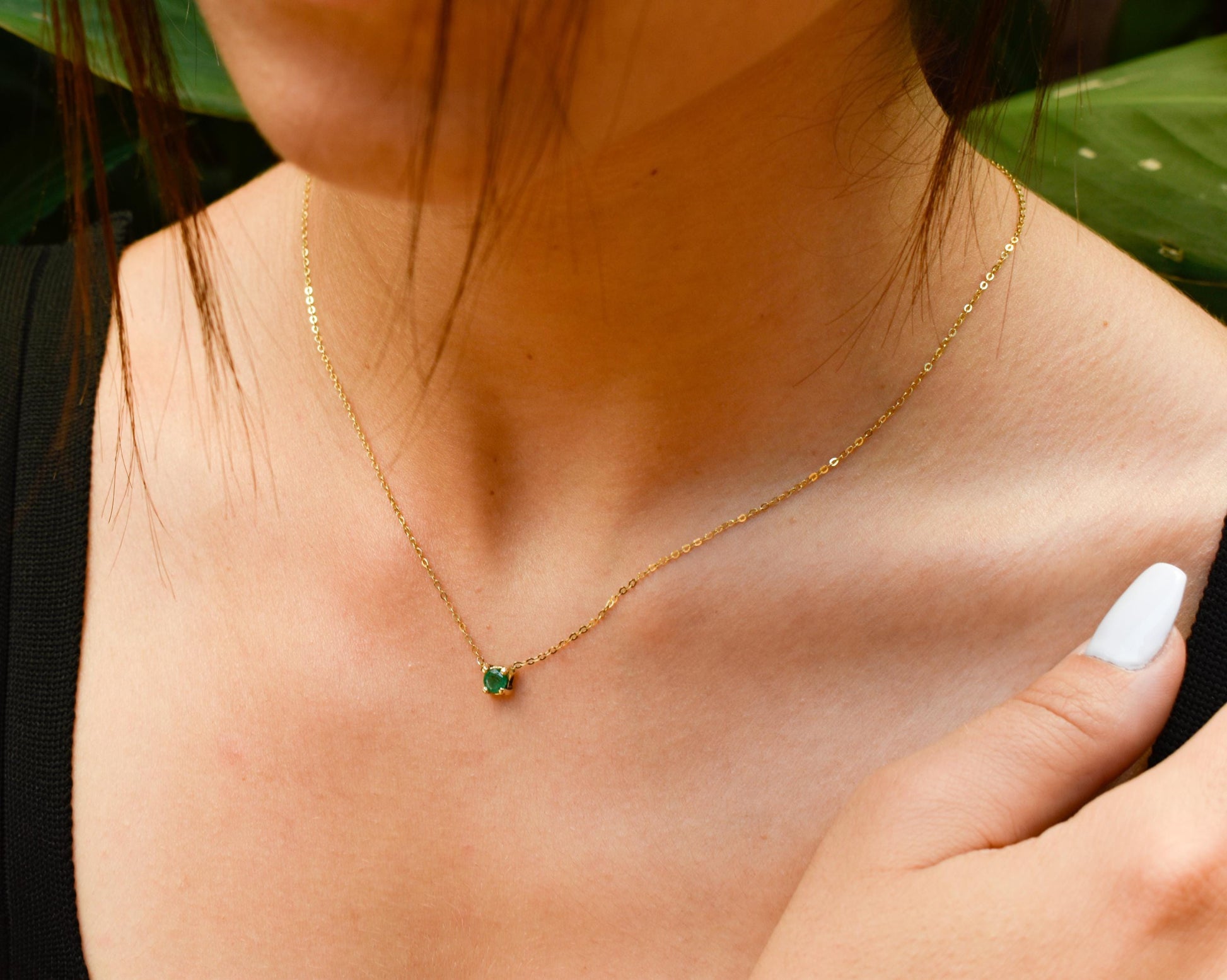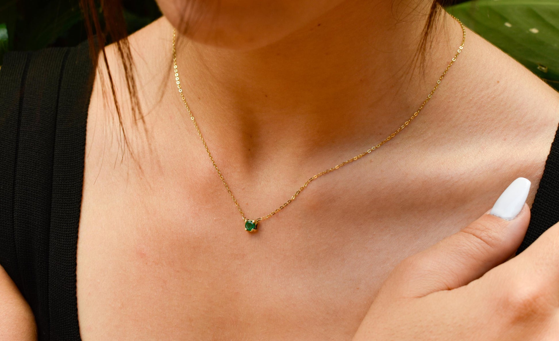 Ένα διακριτικό και κομψό κολιέ από χρυσό 14 καρατίων, διακοσμημένο με αυθεντικό ορυκτό σμαράγδι σε έντονο πράσινο χρώμα. Η καθαρή γραμμή του σχεδίου και η λεπτή αλυσίδα το κάνουν ιδανικό για καθημερινή χρήση αλλά και για πιο κομψές εμφανίσεις. Το σμαράγδι είναι μια πέτρα που συμβολίζει την ανανέωση, την αγάπη και την αρμονία, ενώ η φυσική του λάμψη χαρίζει μια διακριτική αλλά ξεχωριστή πολυτέλεια. ✨
