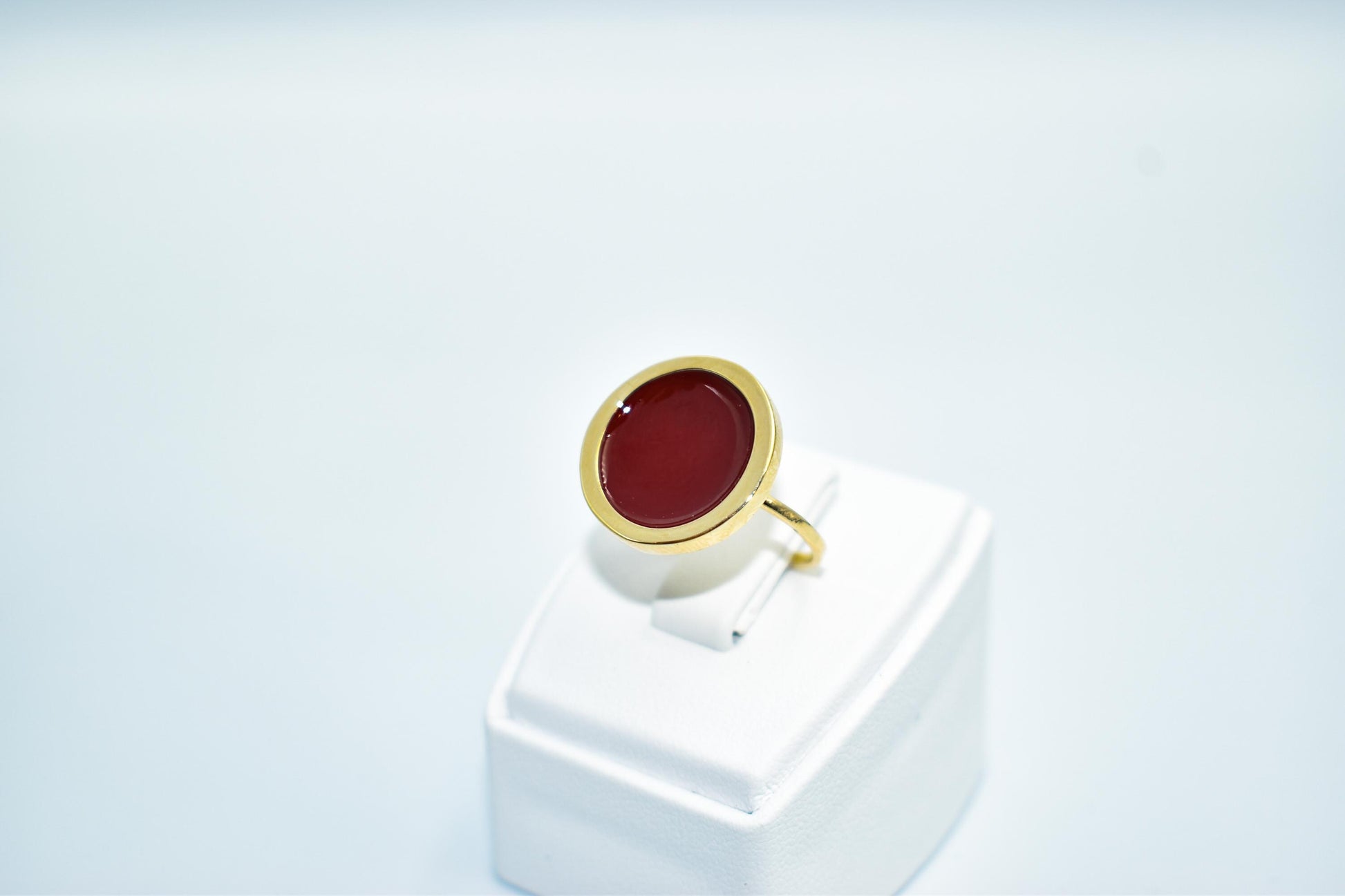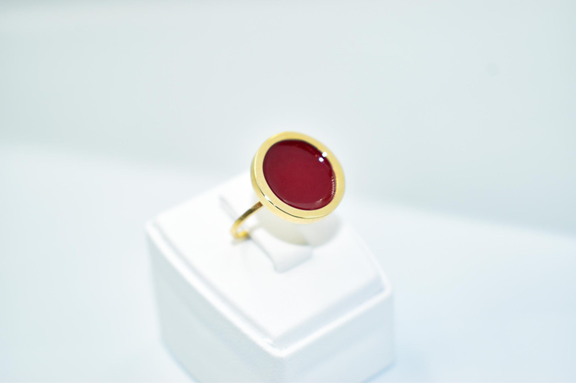 Χειροποίητο Δαχτυλίδι με Μπορντό Σμάλτο Κ14