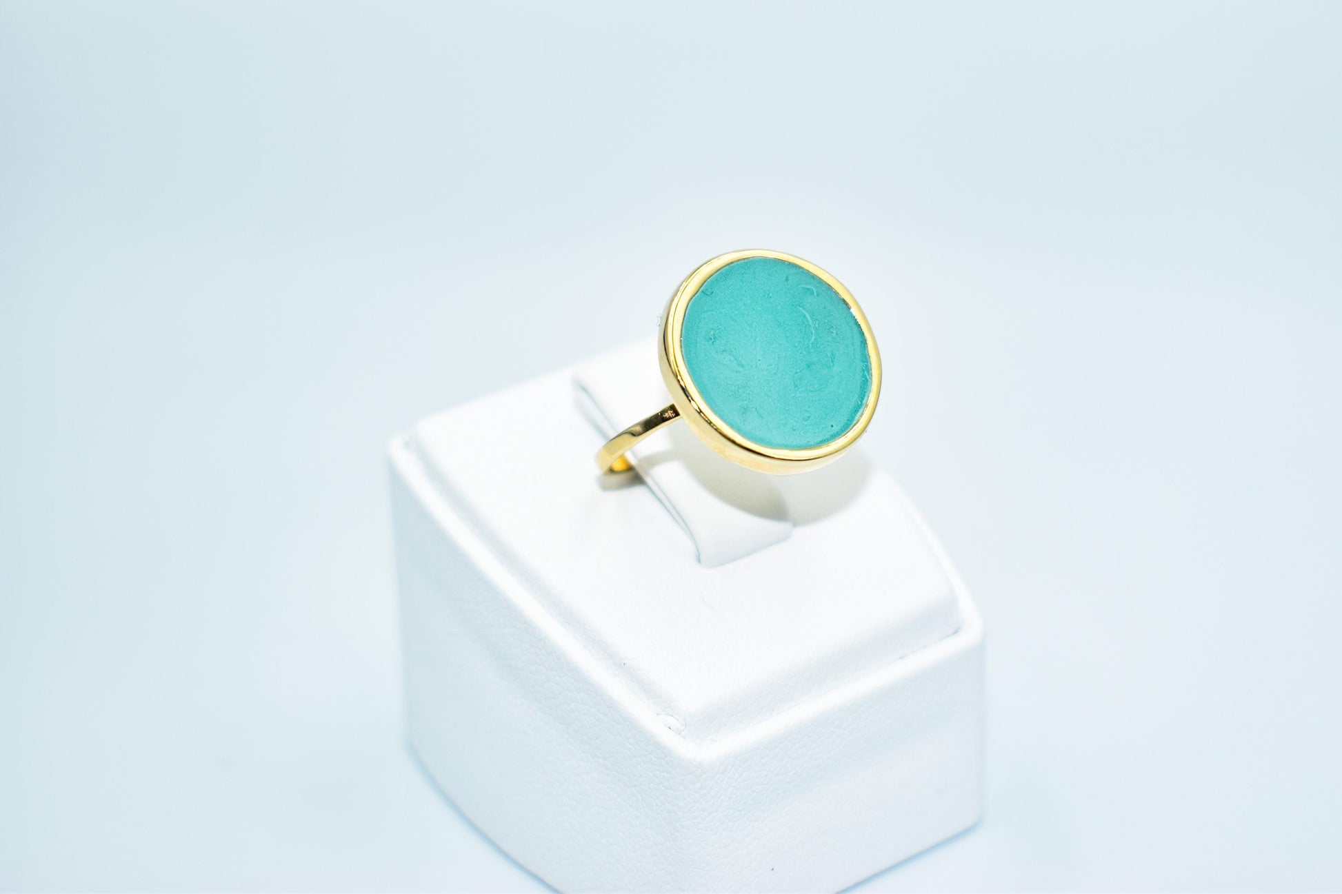 Χειροποίητο δαχτυλίδι με Τιρκουάζ Σμάλτο Κ14