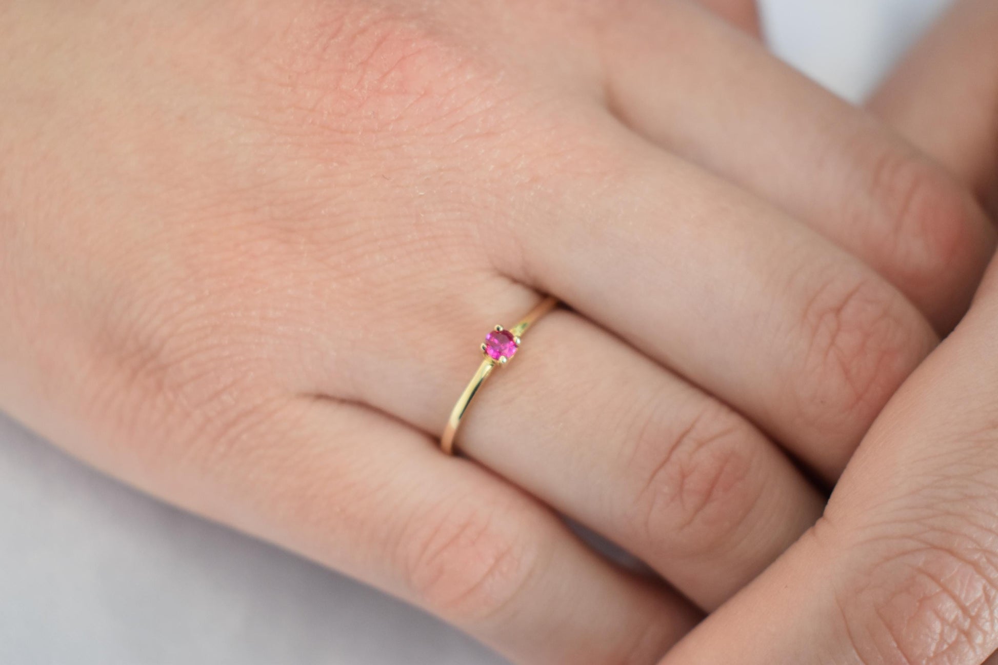 14K Solid Gold Thin Minimalist Ring– Deep Pink Zircon,Stackable Jewellery Gold Ring,14K Wedding & Engagement Stacking Ring, Gift for Her