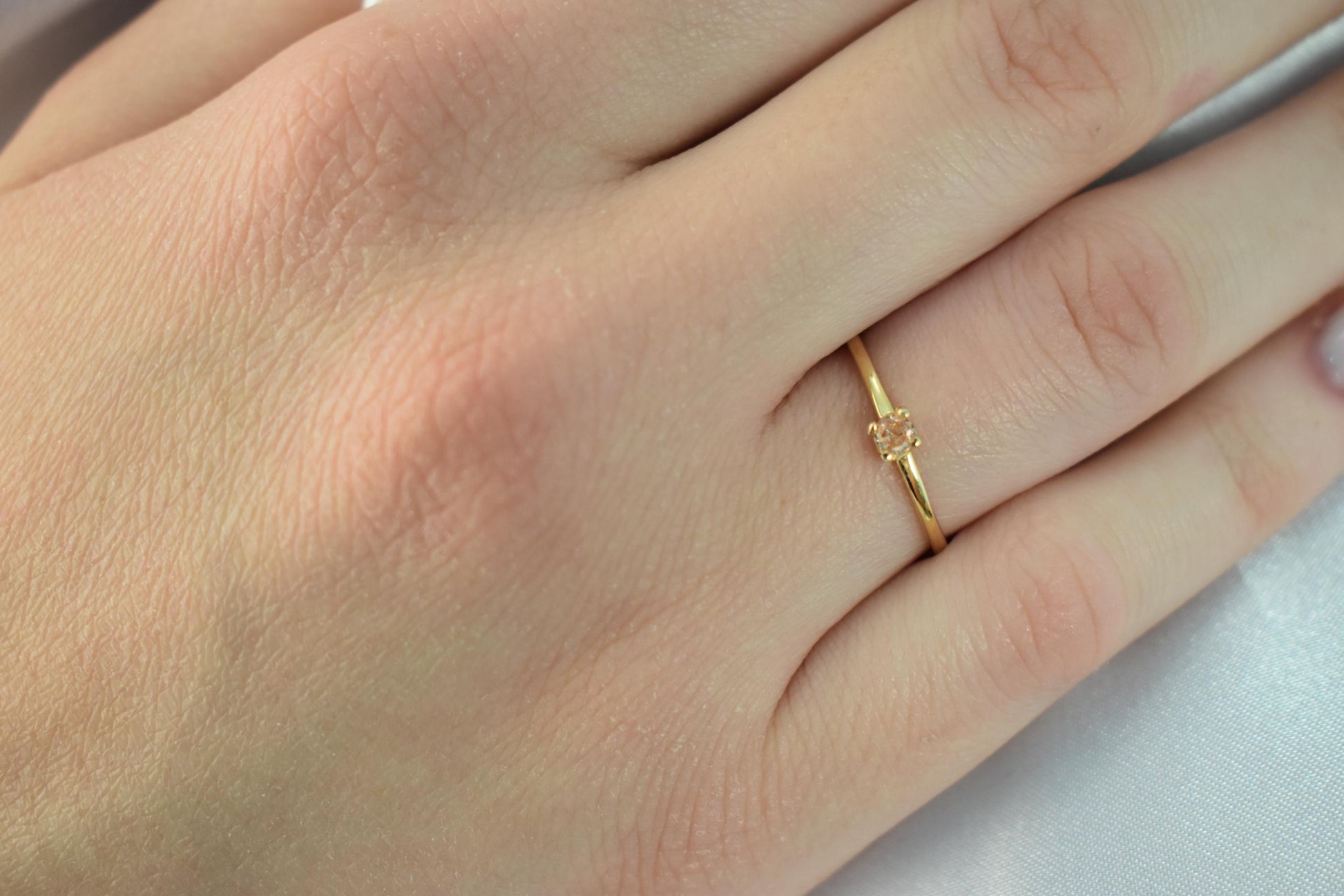 Discover the elegance of simplicity with this delicate gold ring, featuring a round light yellow zircon as its centerpiece. Designed for those who appreciate understated beauty, this ring is a timeless accessory that complements any jewelry collection.
