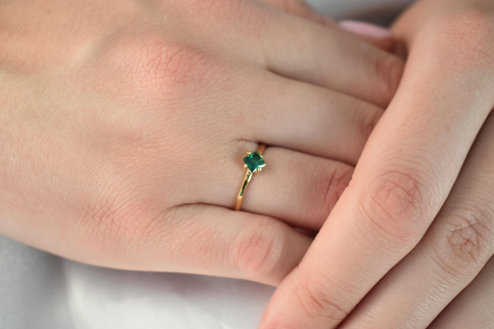 Minimalist Gold Ring with a Square Green Zircon – Available in 9K, 14K & 18K Gold
