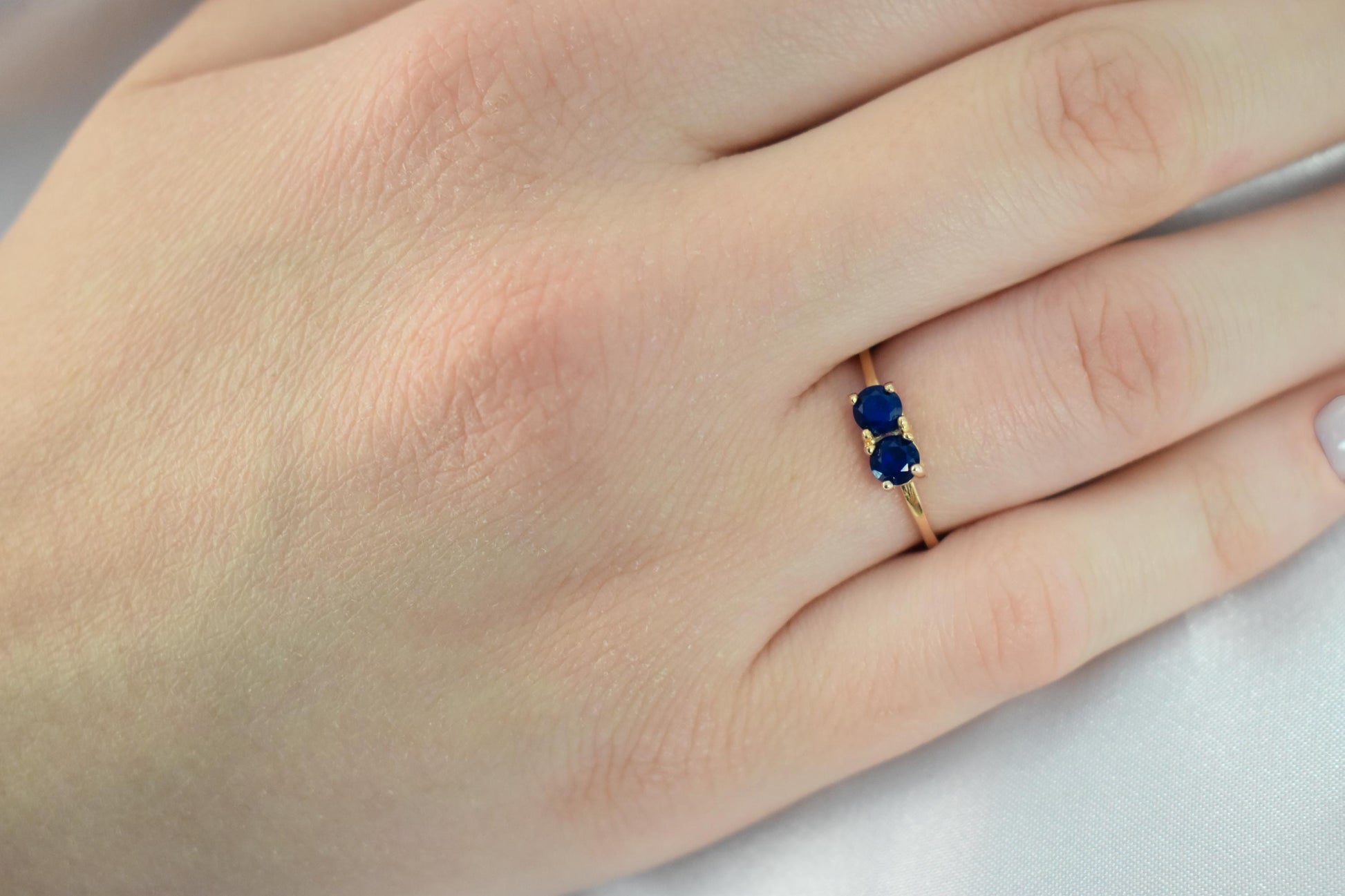 Minimalist Gold Ring with Two Dark Blue Zircons – Available in 9K, 14K & 18K Gold