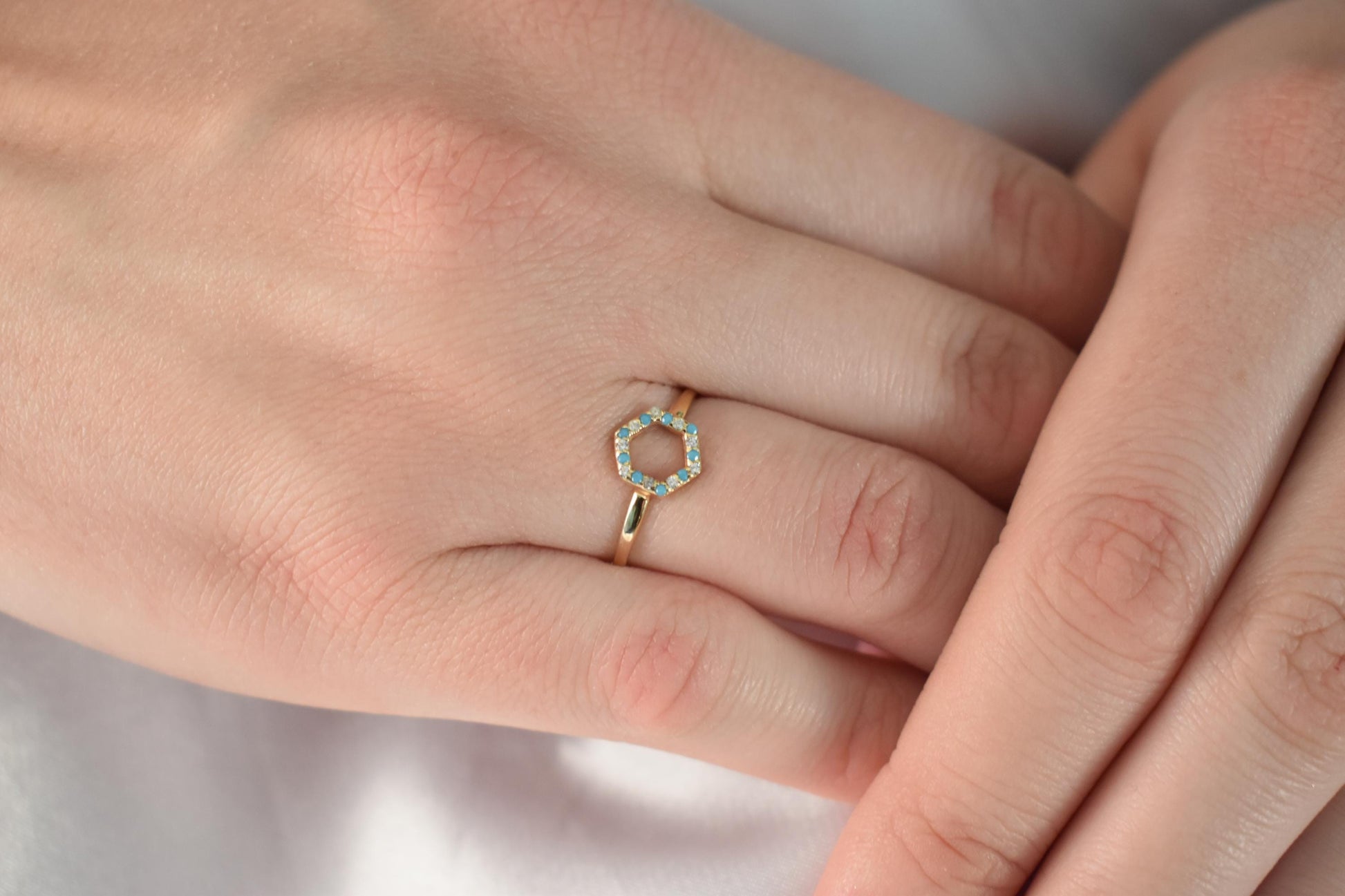 14K Solid Gold Turquoise Ring,Gold Thin Ring,Dainty Gold Ring,Stackable Jewellery Ring,Gold Band,14K Wedding Minimalist Ring for Her