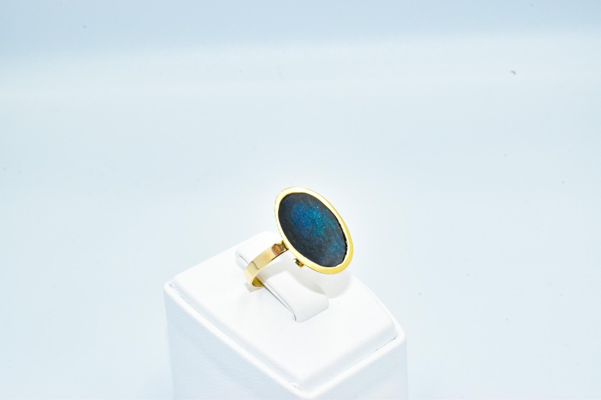 Χειροποίητο Οβάλ Δαχτυλίδι με Μπλε Σμάλτο Κ14