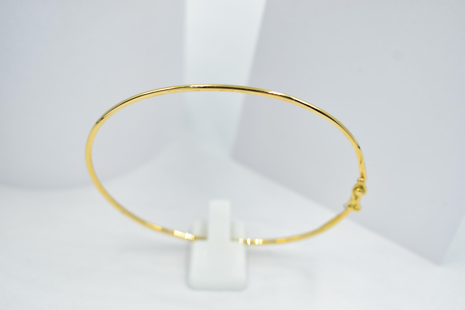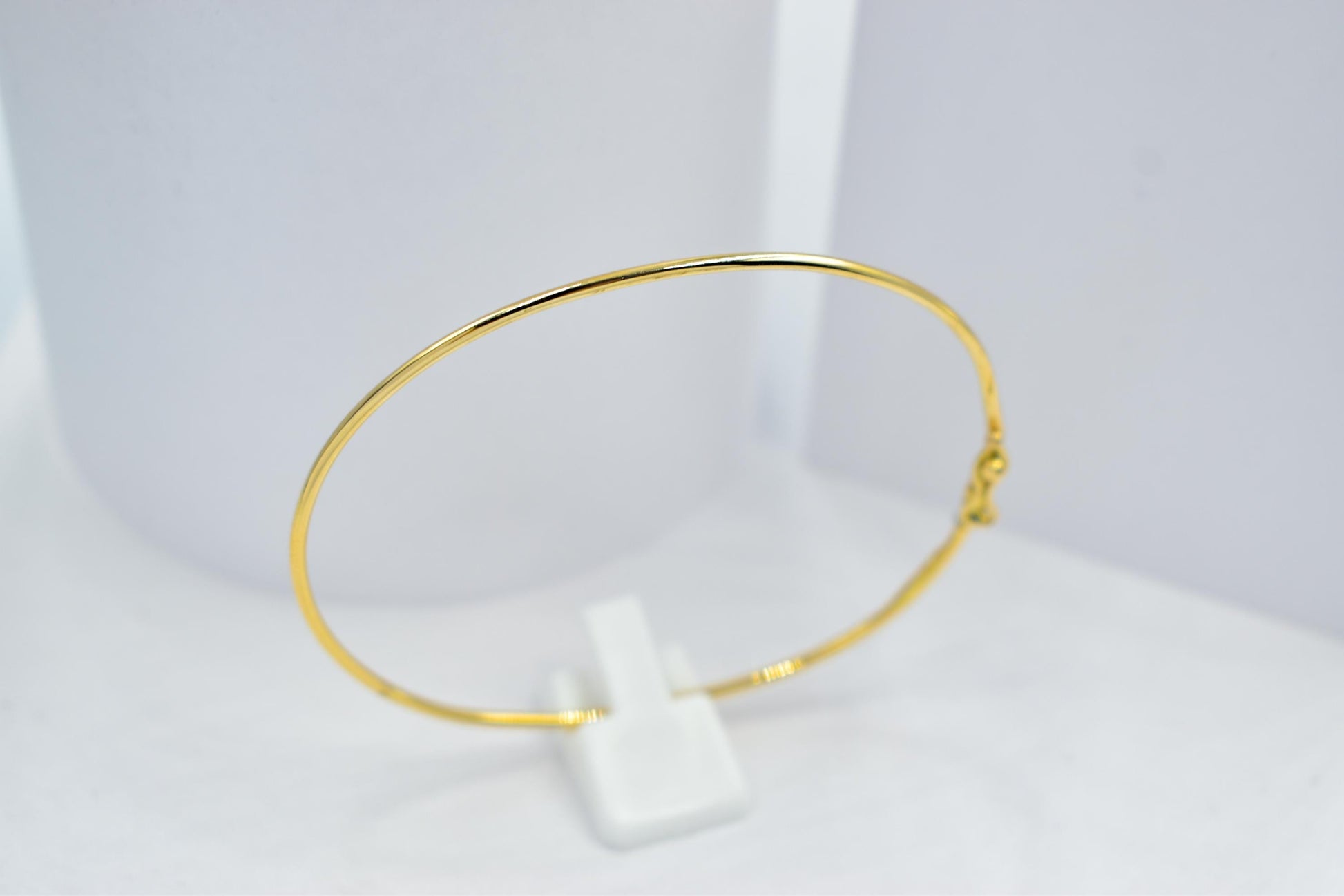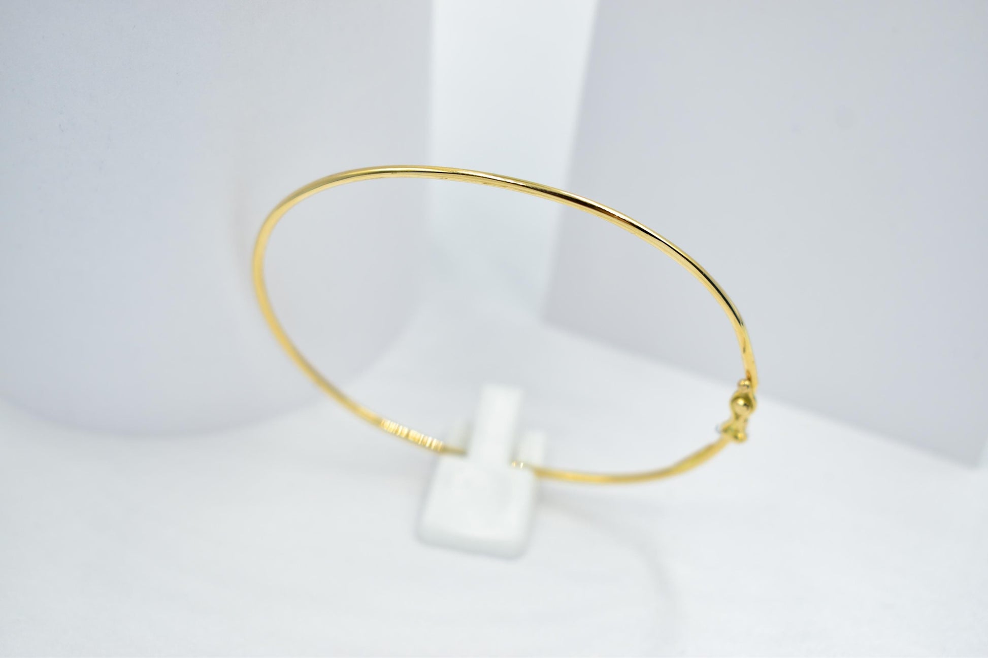 Crafted from real solid gold, the bangle is available in your choice of 14K or 9K yellow gold, offering both premium quality and accessible luxury. Its slim, refined design is perfect for stacking or wearing solo, and the oval fit hugs the wrist securely and comfortably.