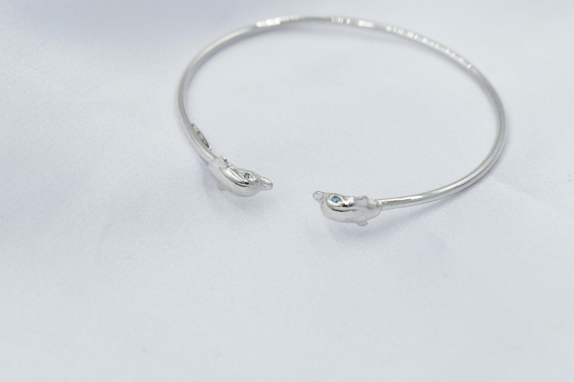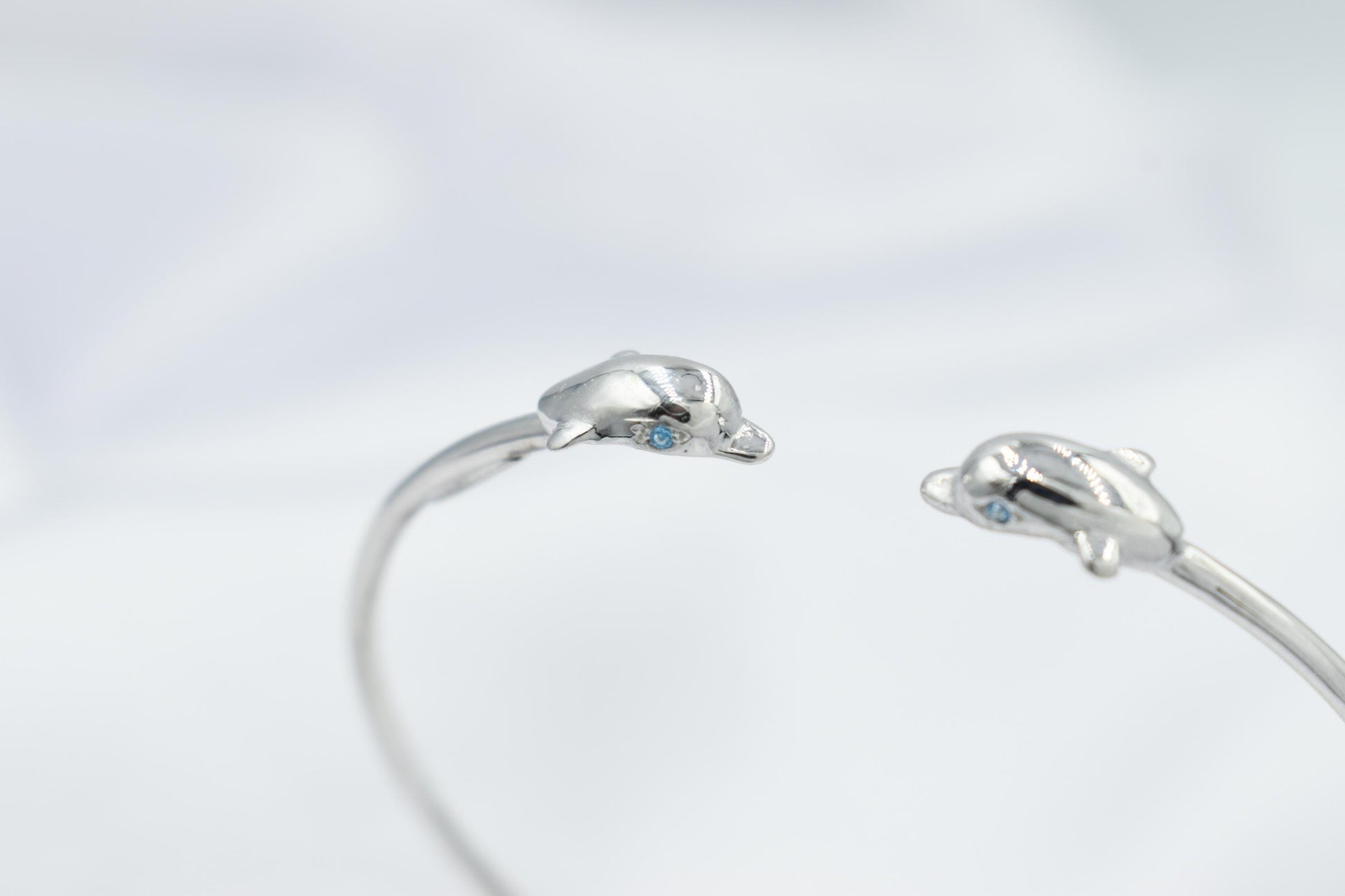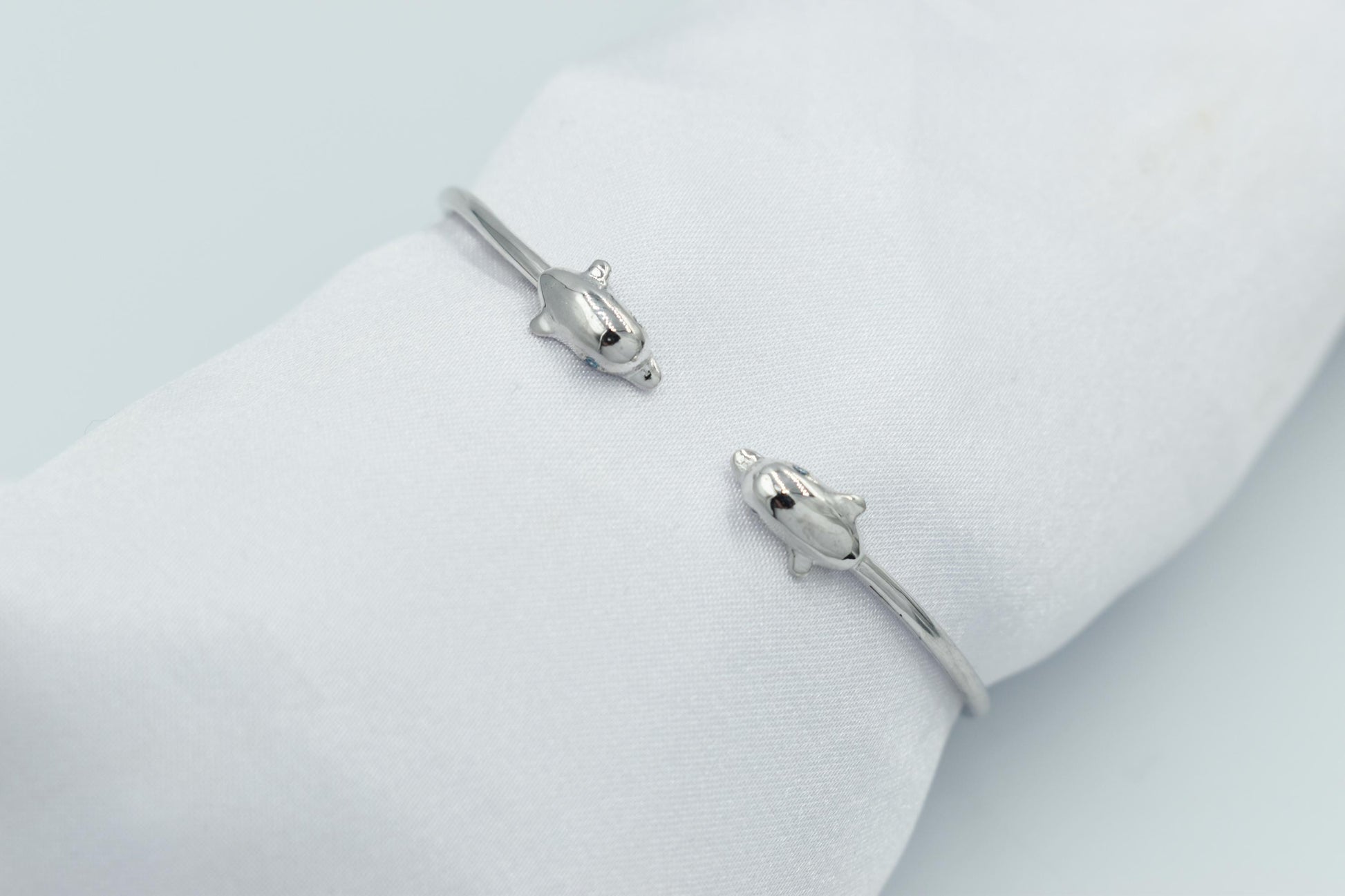 14k White Gold Dolphin Bangle Bracelet,Dolphin Bracelet,Gold Sea Animal Bracelet Bangle,Gold Summer Bracelet,Gift for Her,Sea Gold Bracelet
