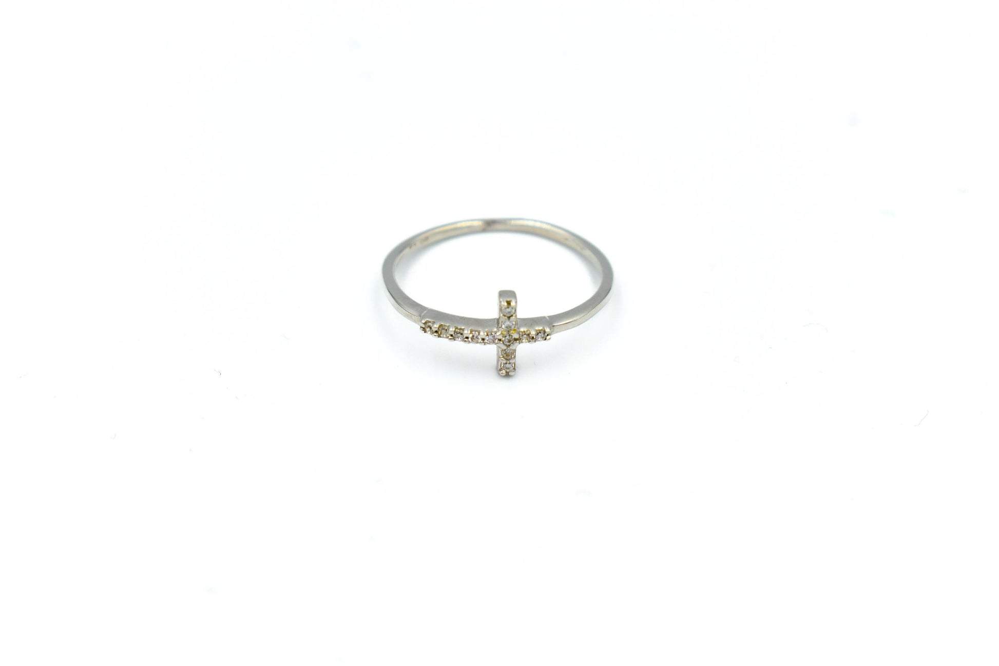 14K White Solid Gold Ring,Cross Ring,Thin Band Ring,Zircon Ring,Elegant Jewelry,Unique Fashion Ring,Handmade Gold Ring,Cross Ring for Her