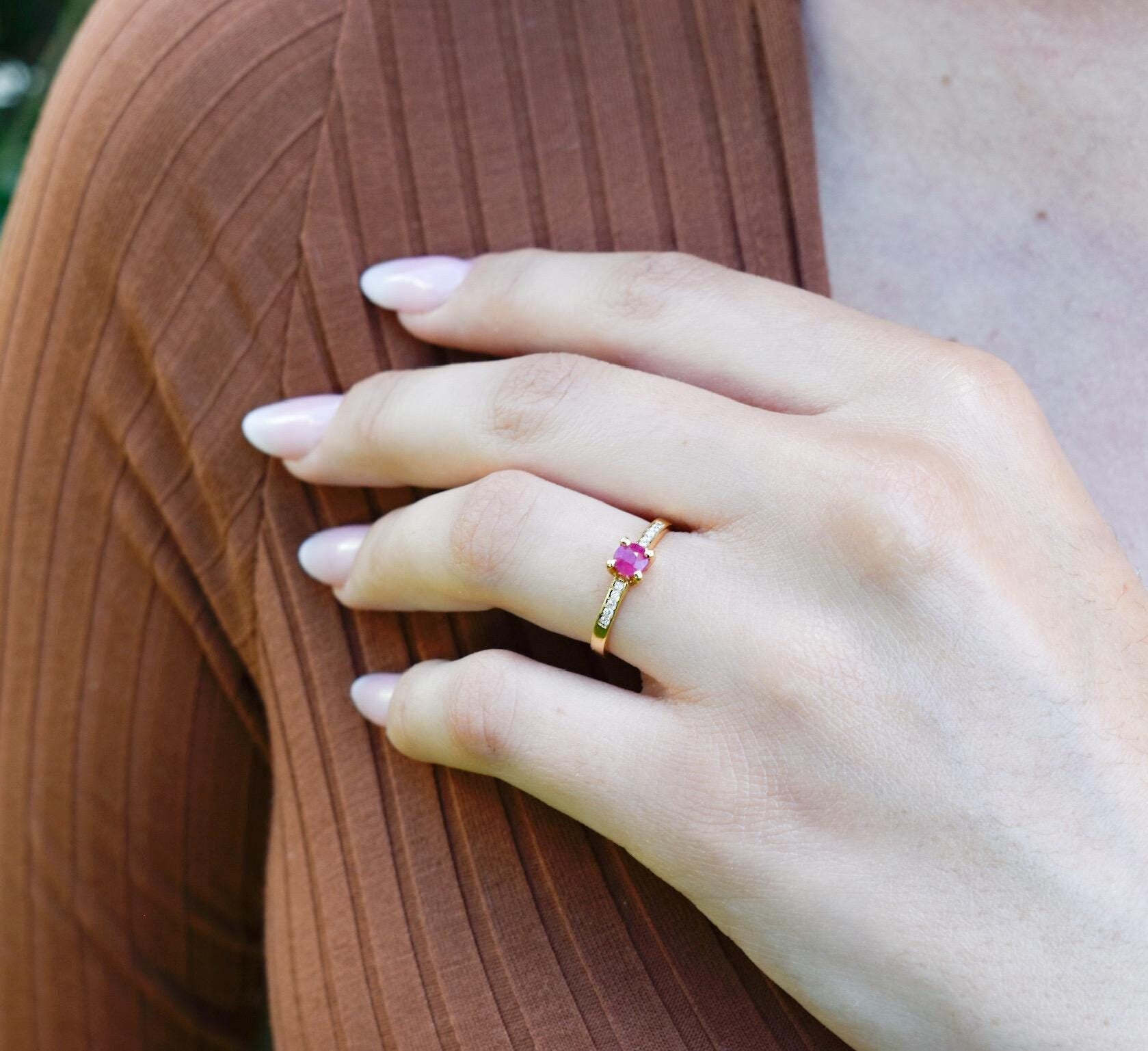 Ο συνδυασμός του ζωηρού κόκκινου ρουμπινιού με τη λάμψη των μπριγιάν προσφέρει μια διακριτική αλλά εκθαμβωτική πολυτέλεια. ✨