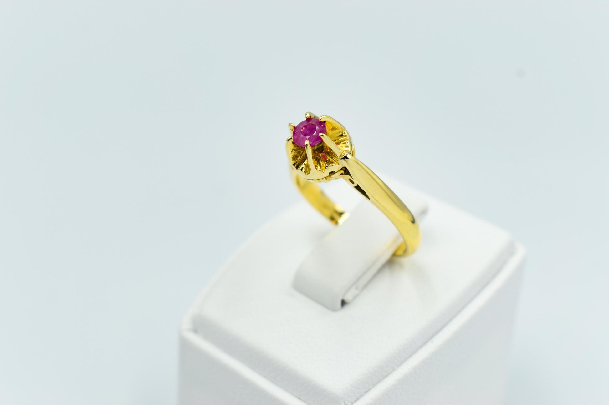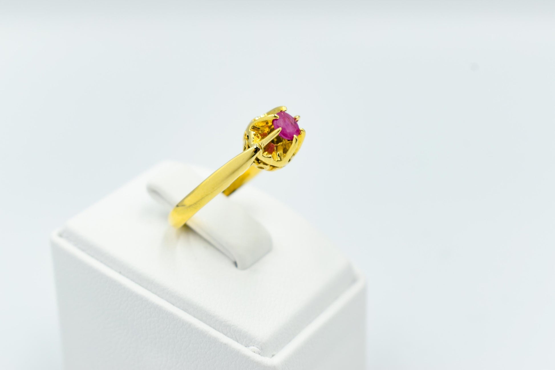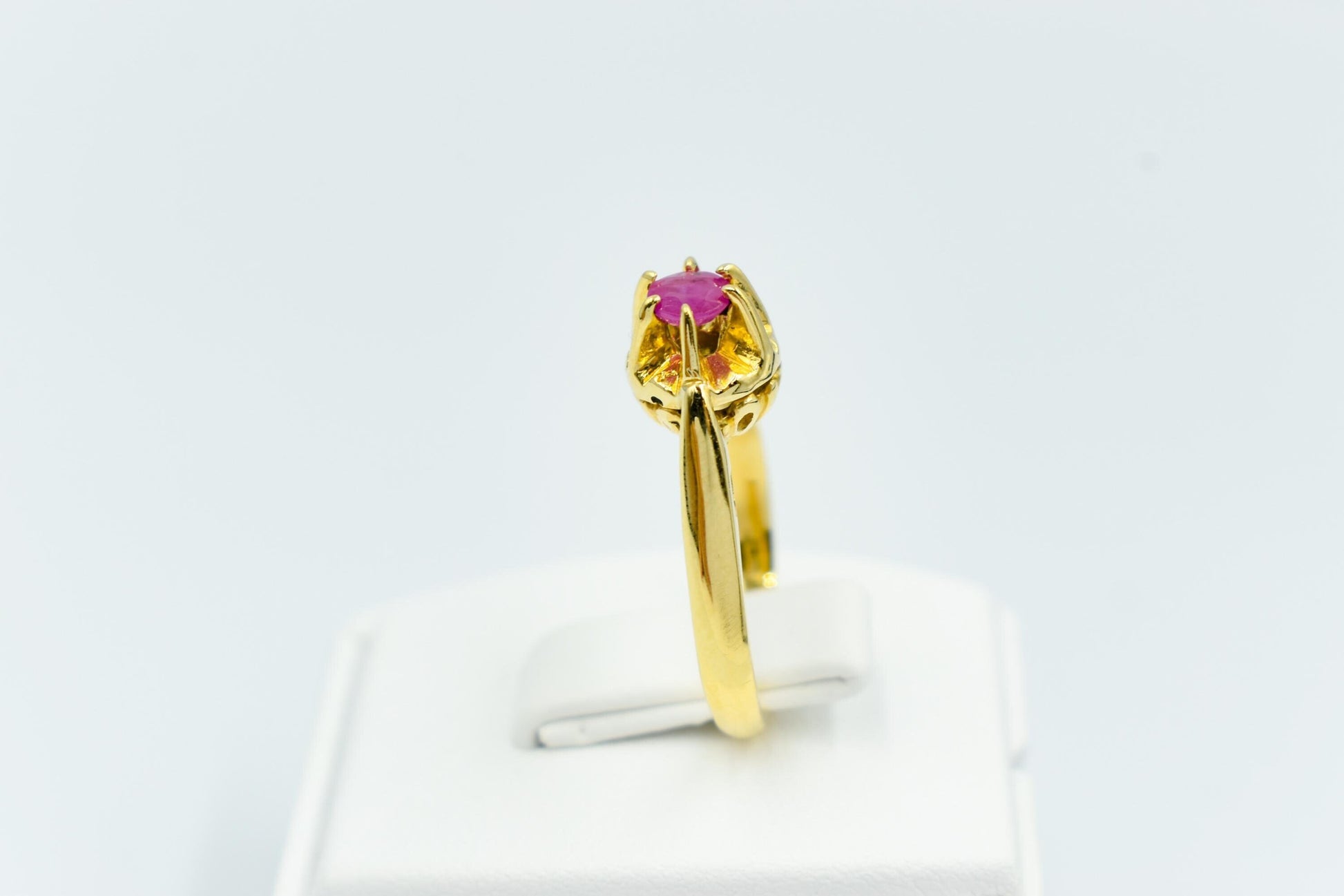 Μονόπετρο δαχτυλίδι από χρυσό 18 καρατίων, διακοσμημένο με αυθεντικό ορυκτό ρουμπίνι υψηλής ποιότητας.
