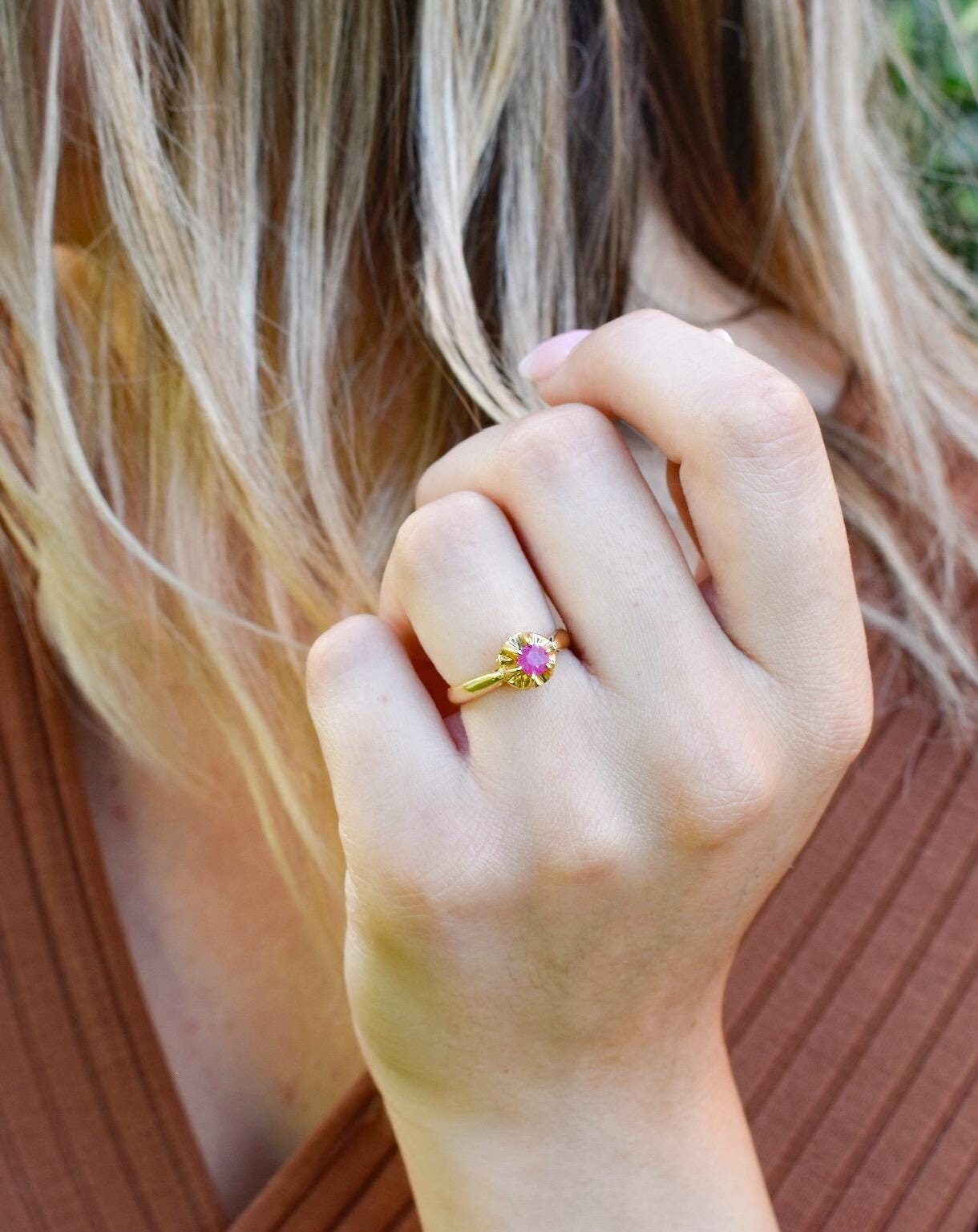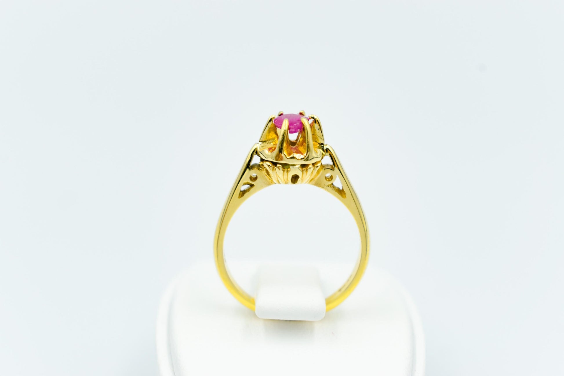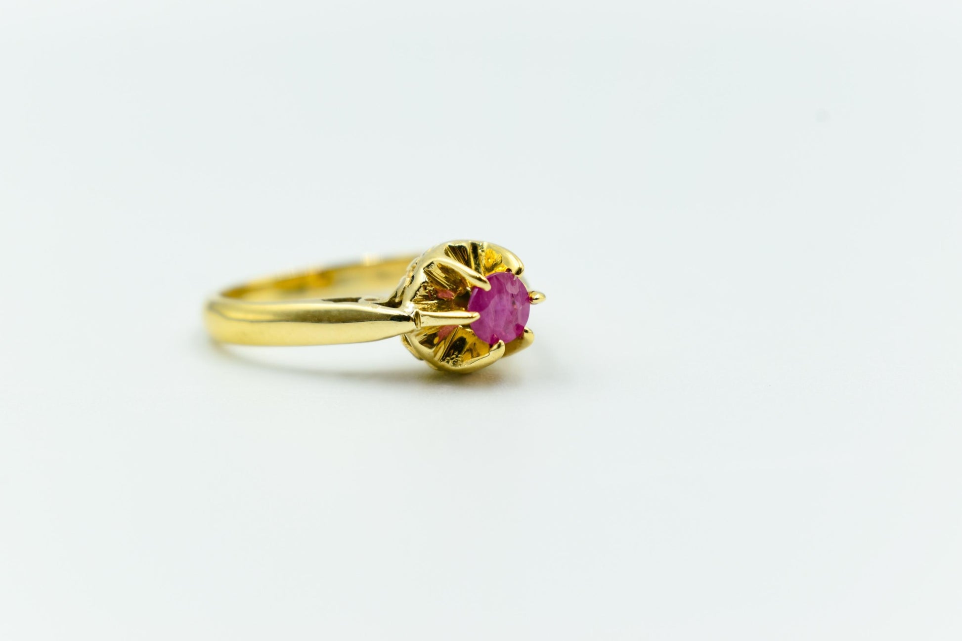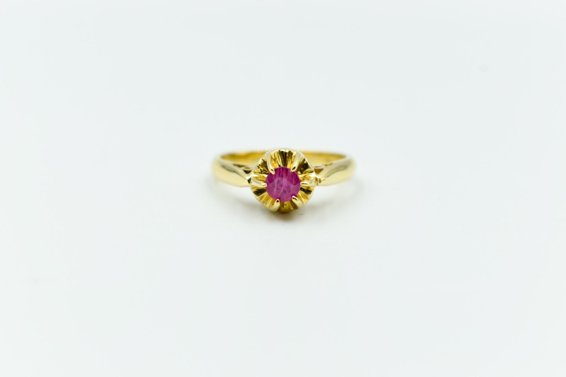 Μονόπετρο δαχτυλίδι από χρυσό 18 καρατίων, διακοσμημένο με αυθεντικό ορυκτό ρουμπίνι υψηλής ποιότητας.