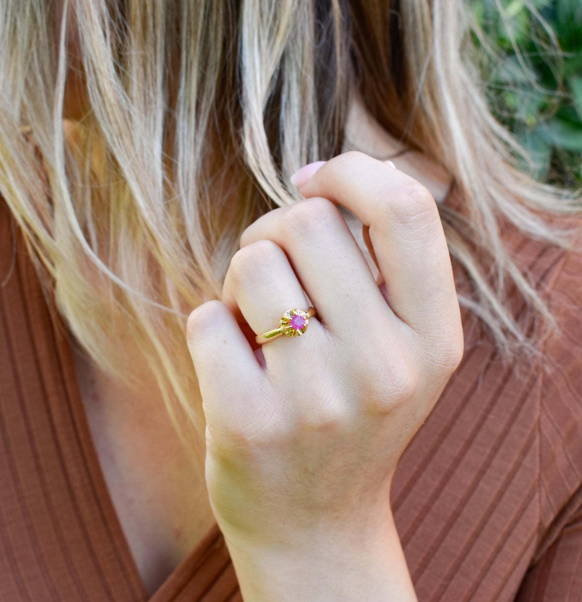 Χειροποίητο Μονόπετρο με Ορυκτό Ρουμπίνι Κ18
