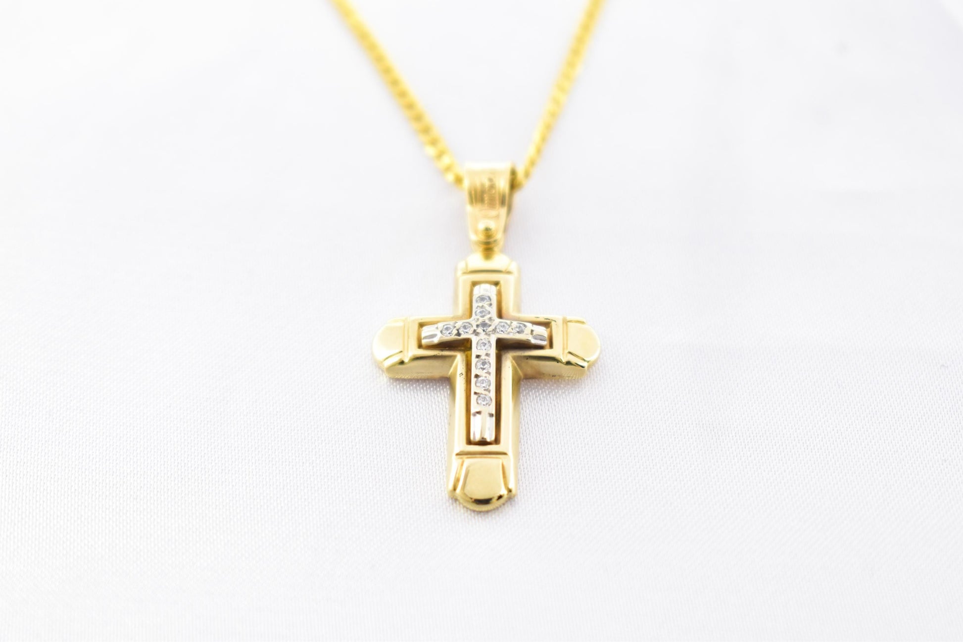 γυναικα Elegant 14K Gold Cross Necklace with Sparkling Cubic Zirconia – Solid Gold Religious Pendant for Men & Women, Baptism or Christening Gift