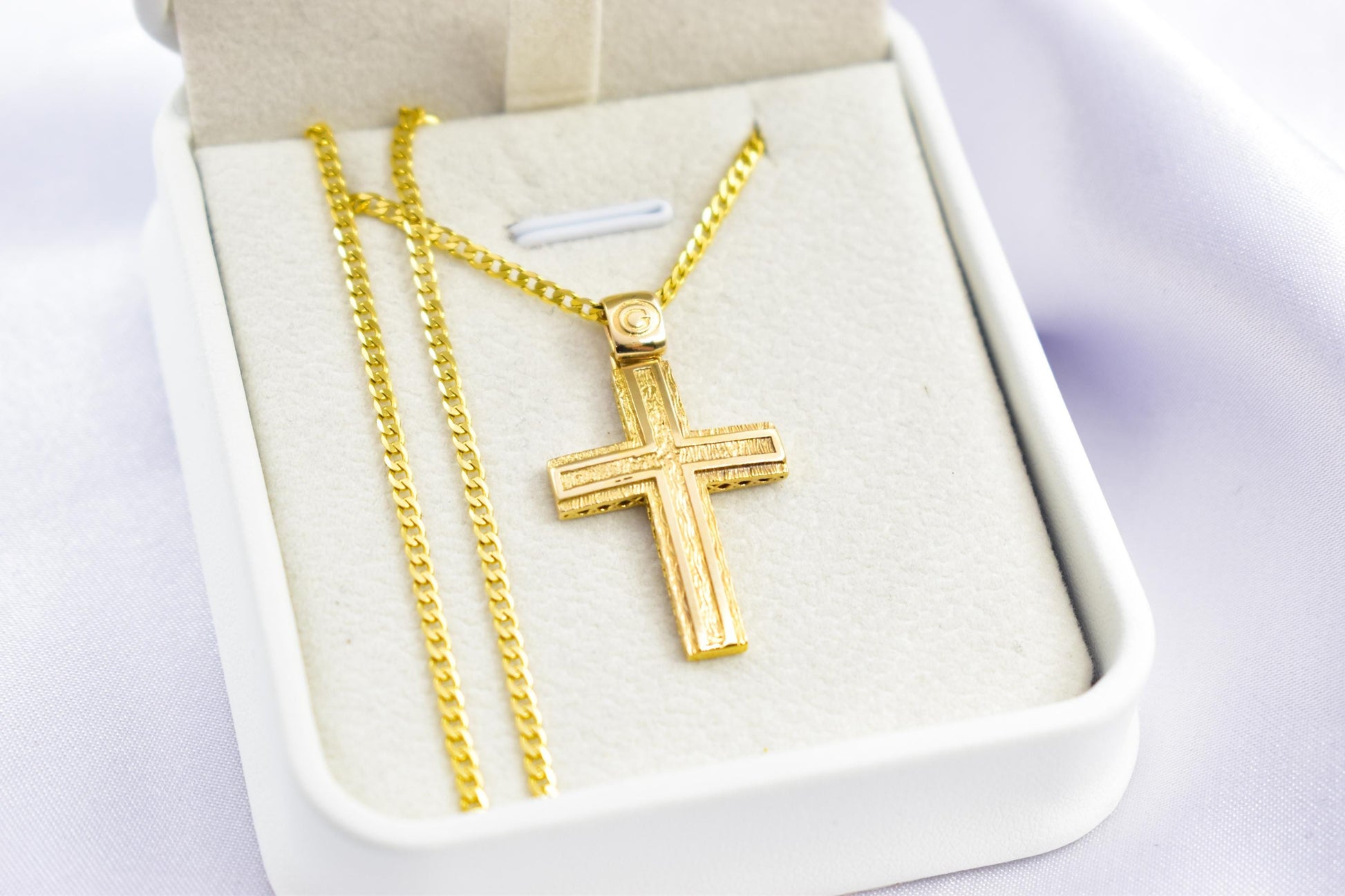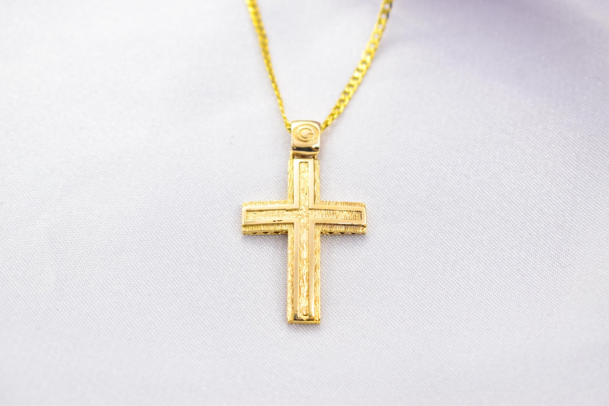 Ανδρικοί Σταυροί Handcrafted 14K Gold Cross Pendant Textured Design,Elegant Hollow Back Crucifix,Orthodox Christian Jewellery,Baptism Gift,Men & Women Chain