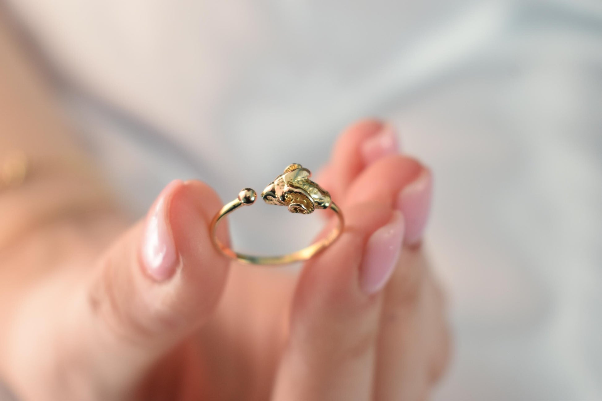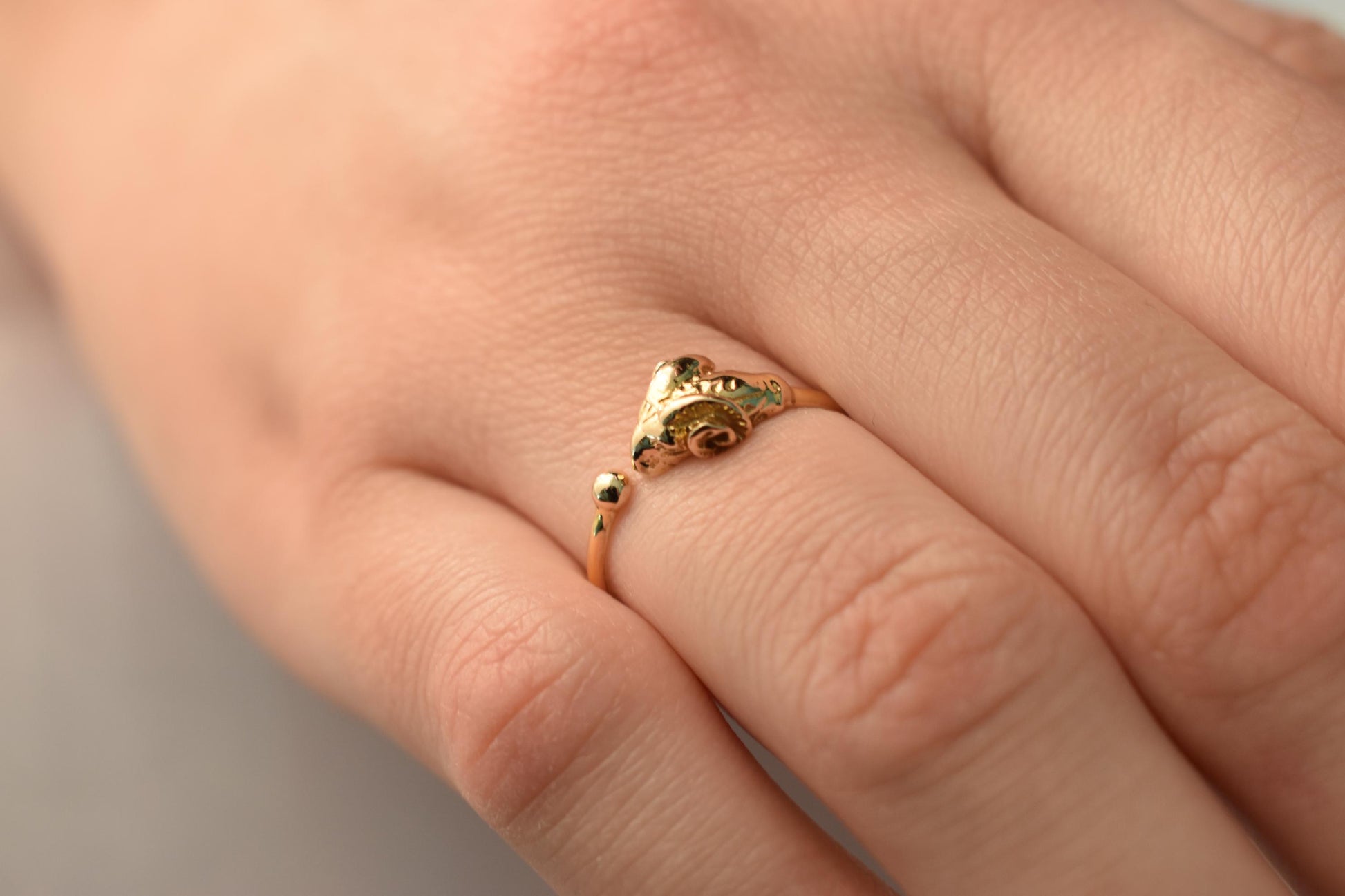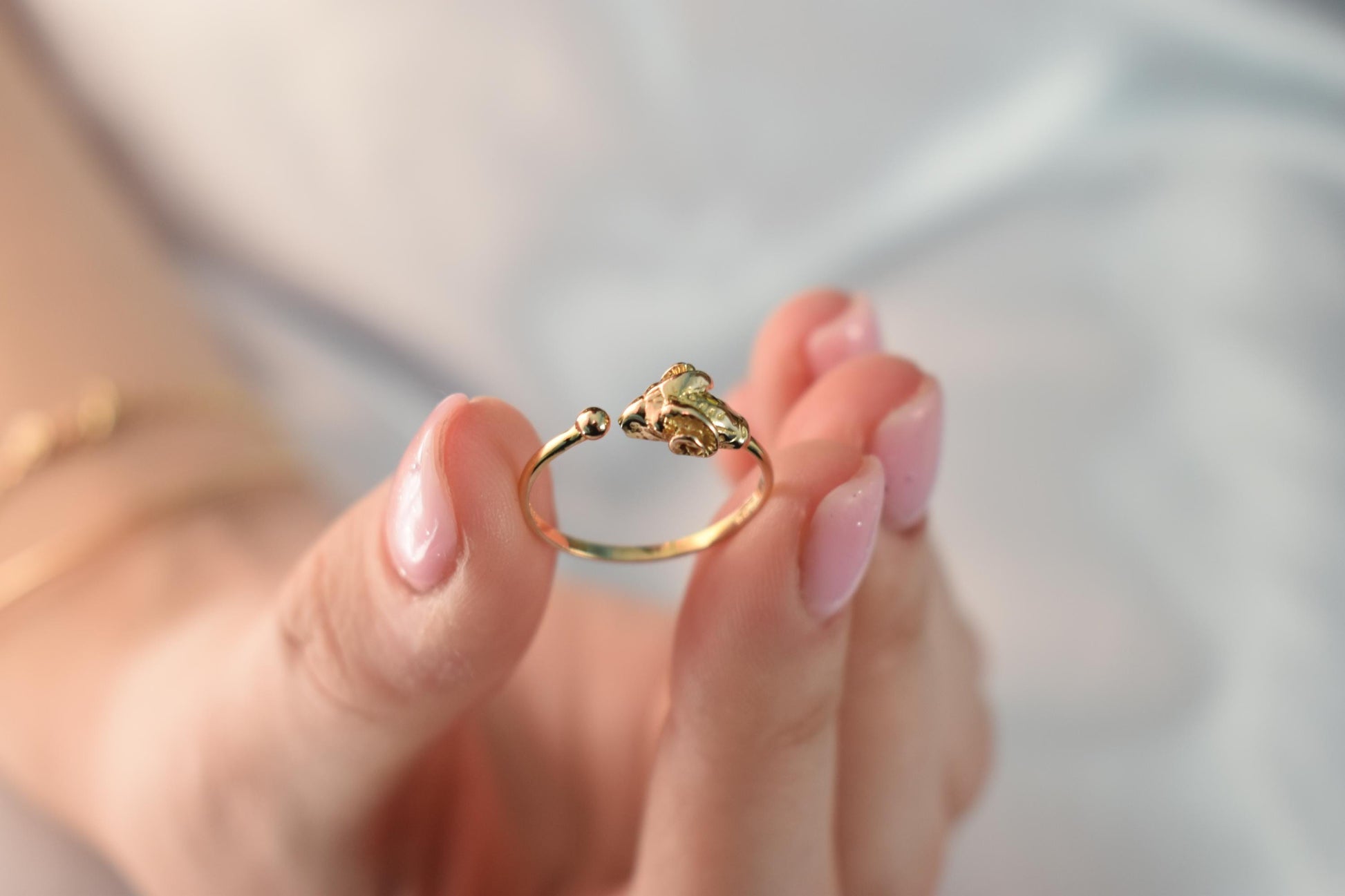 Χειροποίητο δαχτυλίδι Κ14 σε σχέδιο κριαριού, ένα μοναδικό και συμβολικό κόσμημα που εκφράζει δύναμη, αποφασιστικότητα και αυτοπεποίθηση.