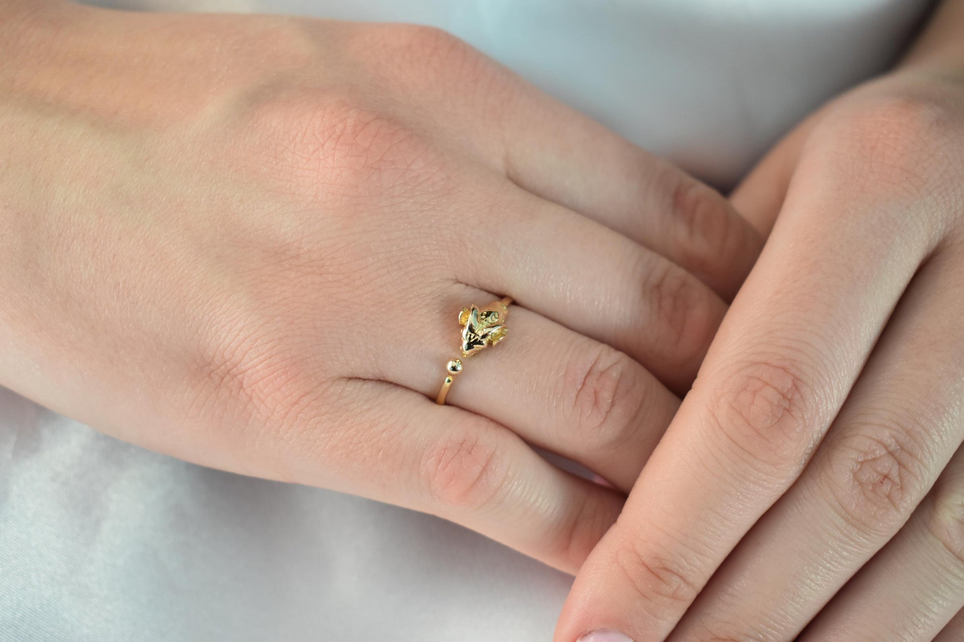 Το κριάρι είναι φιλοτεχνημένο με λεπτομέρεια στο εργαστήριό μας, ενώ η ανοικτή γραμμή του δαχτυλιδιού καταλήγει σε μία μικρή χρυσή μπίλια που προσθέτει μοντέρνο, κομψό τελείωμα. ✨