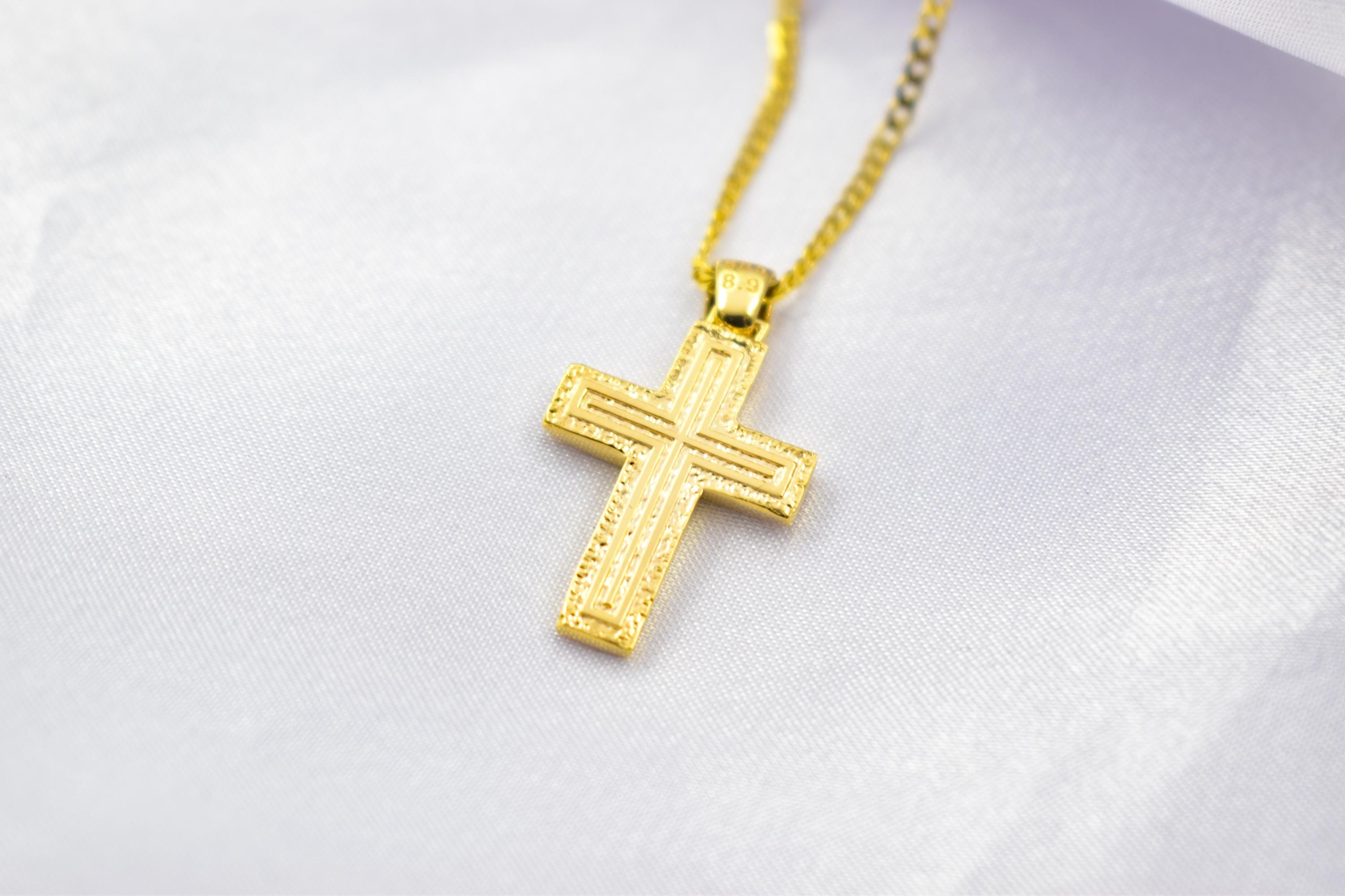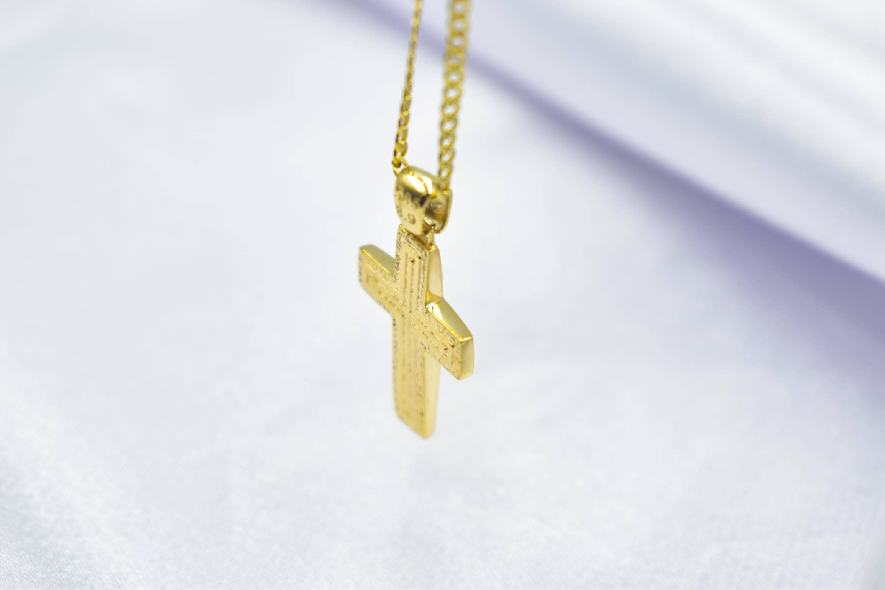 Reversible 14K Solid Gold Cross Pendant | Polished Front & Satin Brushed Back | Classic Orthodox Necklace | Men’s & Women’s Baptism Gift | Optional Chain