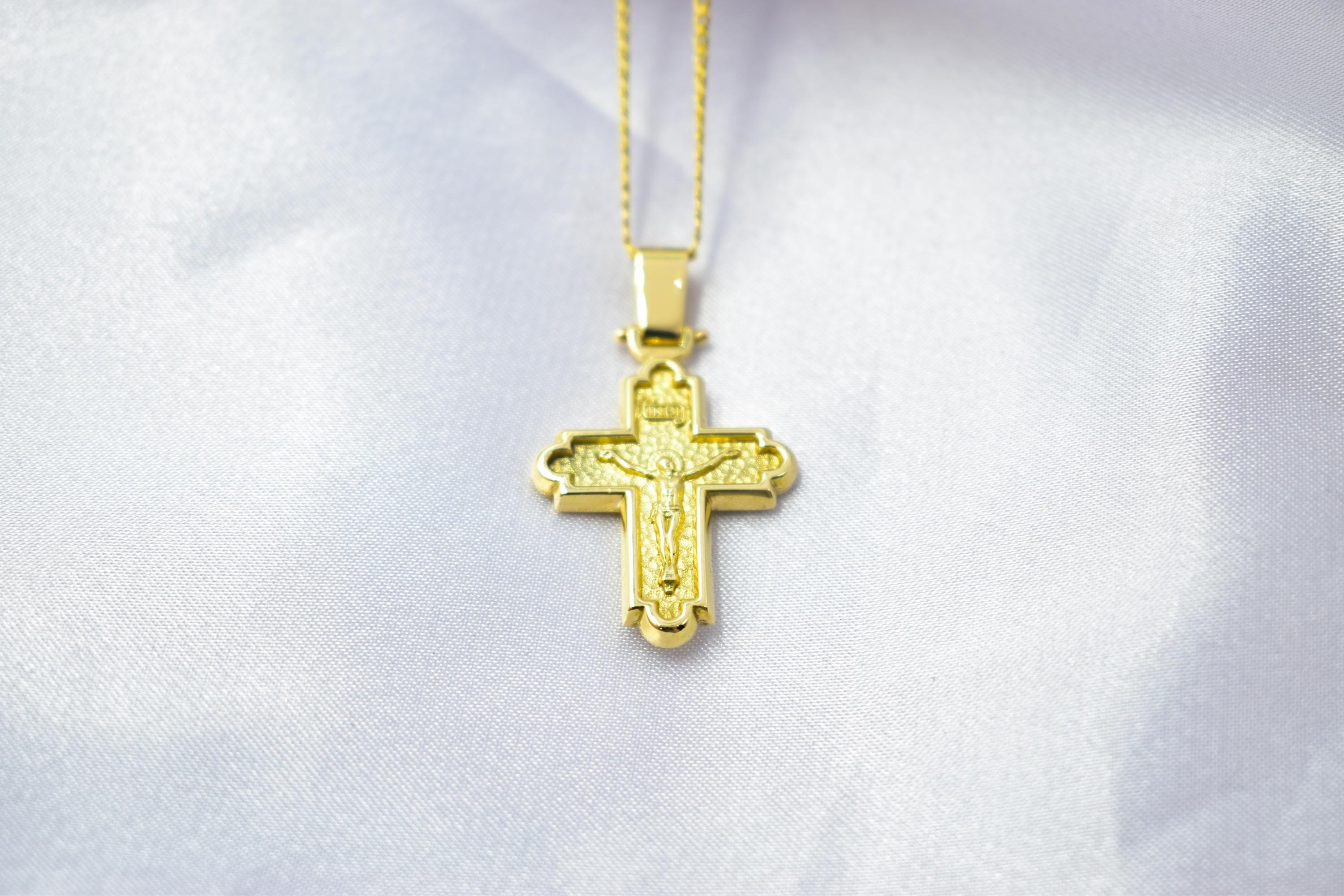 14K Solid Gold Crucifix Cross Pendant – Raised Jesus Figure – Double-Sided – Embossed Back – 14K Gold Chain Option – Orthodox Christian Jewelry